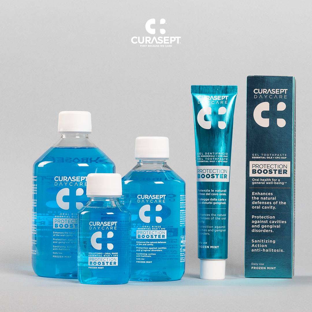 Fontos, hogy olyan szájvizet használjunk, ami a szájszárazság problémáját nem súlyosbítja tovább, tehát alkohol- és SLS-mentes! Ilyen termék a Curasept Daycare Protection Booster mindennapos használatra javasolt szájvíz, ami a különleges, illóolajokkal és CPC-vel dúsított összetételének köszönhetően erősíti a szájüreg és az íny természetes védelmét. A CPC (cetilpiridinium-klorid) antibakteriális és antivirális hatású összetevő, ami az ínygyulladás és a lepedék kialakulásának megakadályozására az egyik legkiválóbb hatóanyag.
