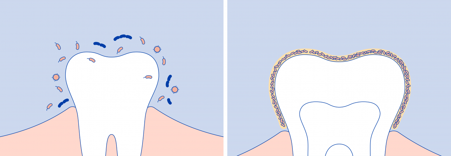 Mint mindenhol máshol a természetben, a szádban is mindig jelen vannak baktériumok. A fogaid mintegy 700 különböző baktériumfajnak adnak otthont, amelyek biofilmnek nevezett struktúrákat hoznak létre. Ez a biofilm fontos szerepet játszik a száj egészségének megőrzésében és a megvédi a fogakat az eróziós savaktól.