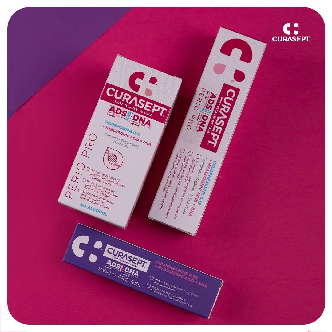 Curasept PERIO PRO szájöblögető és fogkrém klórhexidin tartalmánál fogva antibakteriális és plakkellenes hatású így nemcsak szájsebészeti beavatkozások előtt érdemes használni, hanem kúraszerűen utána is. A Curasept PERIO PRO szájöblögetőben és fogkrémben található szabadalmaztatott ADS® (Anti Discolouration System) megakadályozza a klórhexidin okozta elszíneződést és ízérzék-zavart.